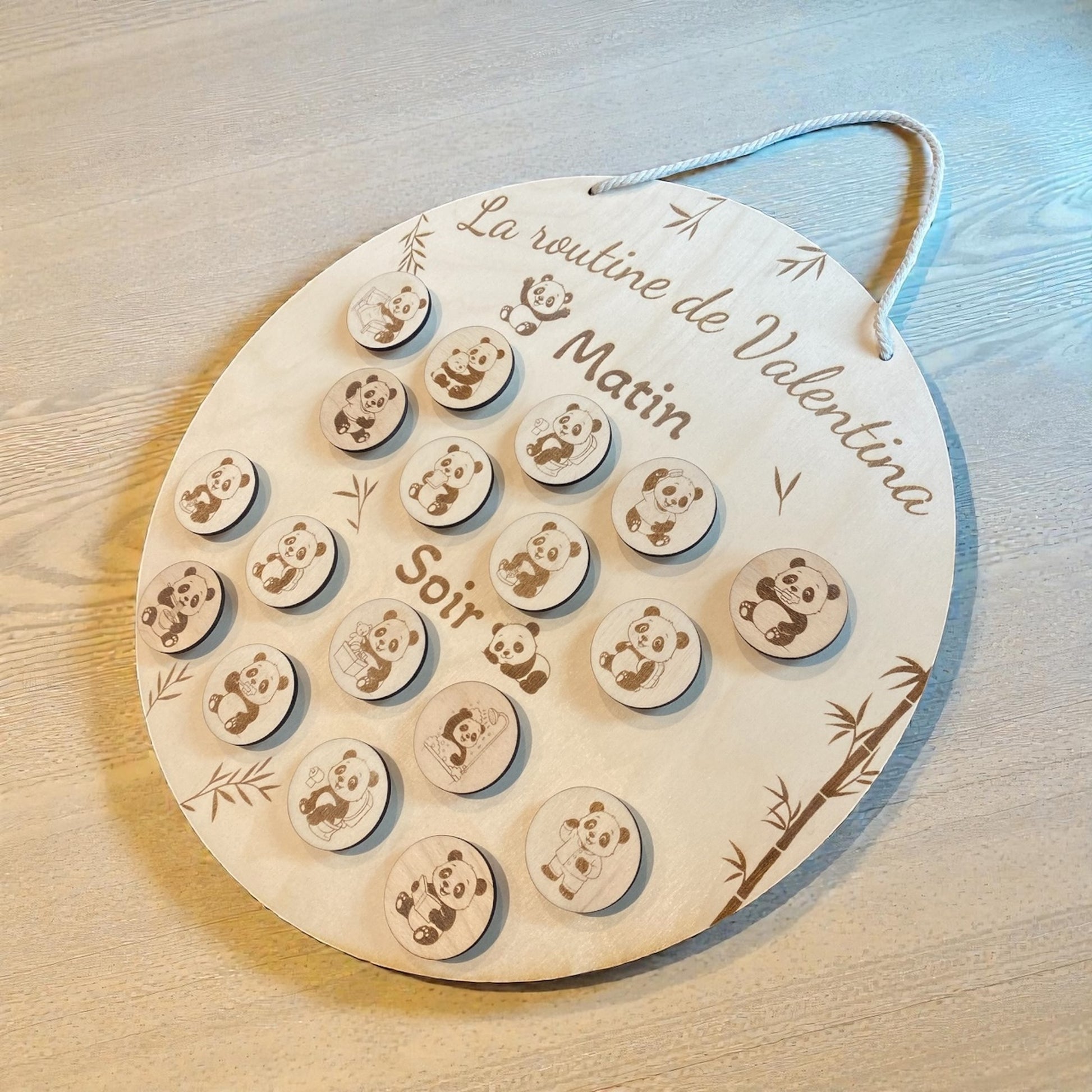 Routine enfant en bois sur le thème "Panda"