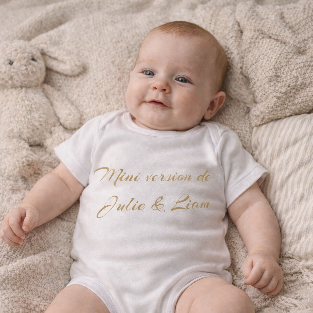 Ce body bébé personnalisé en 100 % coton allie douceur, confort et émotion.
