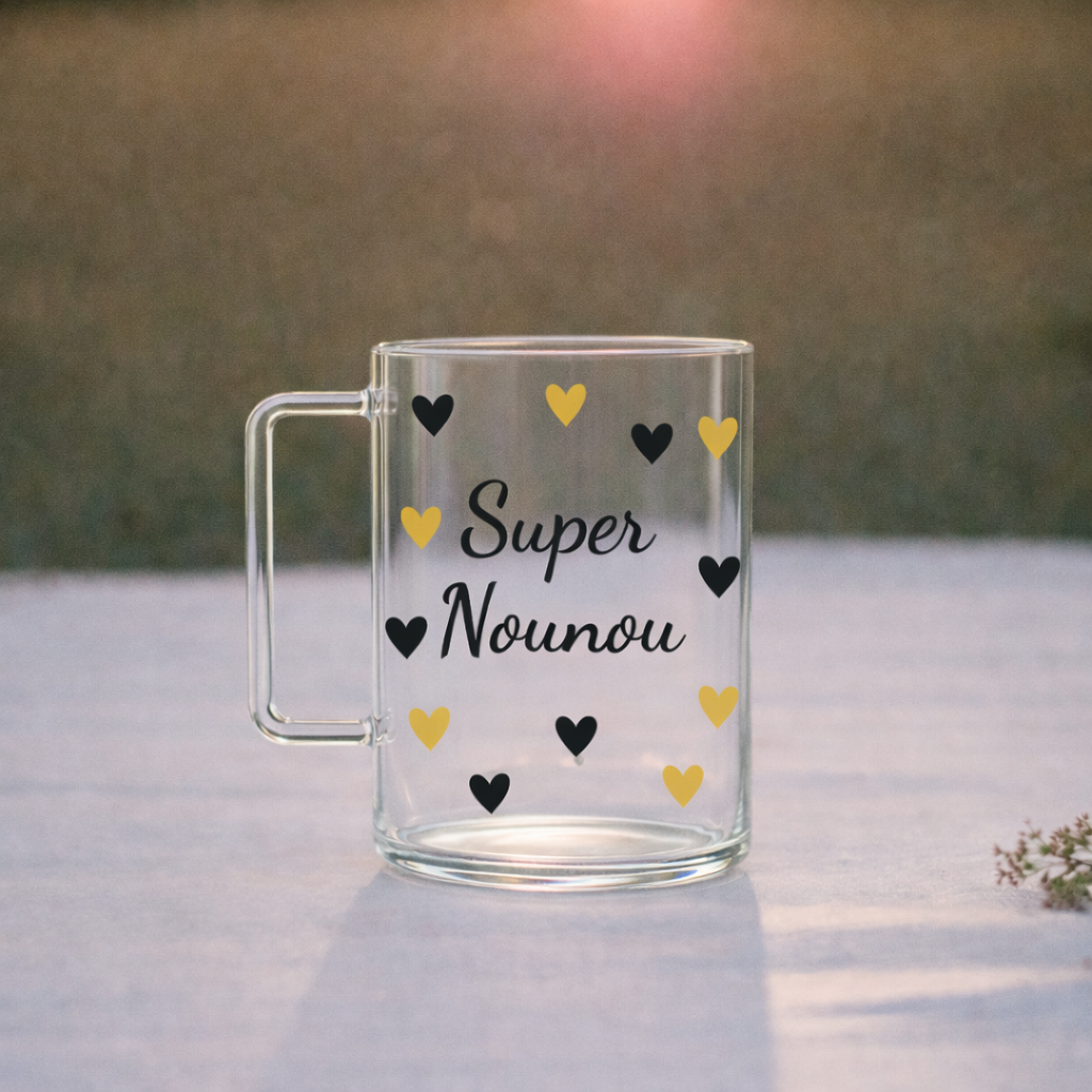 Ce mug en verre personnalisé est idéal pour créer un cadeau unique et plein de sens.